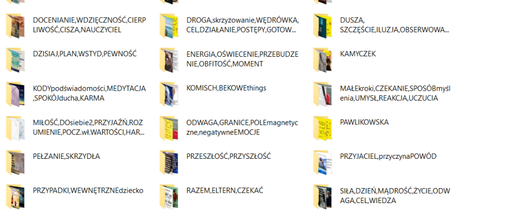 Po prostu się w tym wszystkim najzwyczajniej w świecie już gubię…, a dodam tylko, że te są TYLKO z fejsa! 🤦♀️🙄🤷♀️ Chciałabym je jakoś tak sobie poukładać, abym wiedziała, gdzie co, choć tak mniej więcej, jest…, jak tego szukać… i czy można to zrobić może w jakiś sposób, poprzez odpowiednie klawisze na kompie, że np. jak wpiszemy jakieś tylko kluczowe słowo, np. MIŁOŚĆ, ODWAGA…, czy coś… to system/ komp. nam to sam będzie w stanie odnaleźć???