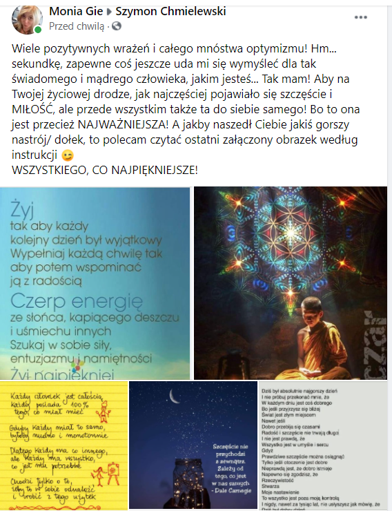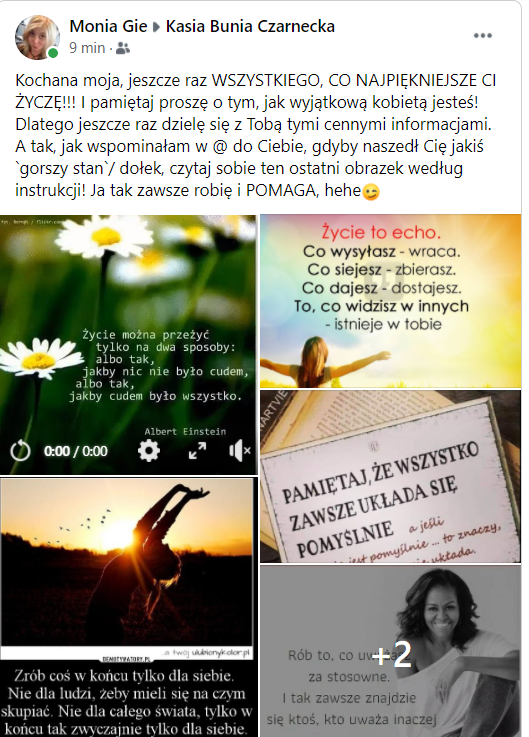 I tym sposobem zaczęła kreować dla niego ponownie życzenia, które opublikowała na fejsie właśnie ok. 16/17. A wyglądały one następująco: