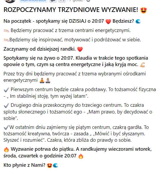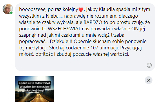 Otóż do jedzenia tej zupy ponownie nie wiedziałam, co mam sobie oglądać… Wtedy jednak pomyślałam, że może odsłucham sobie jeszcze tej medytacji 107, bo ja tak bardzo lubię słuchać tego uspokajającego mnie wręcz głosu Klaudii. Poza tym z tej medytacji chcę przecież uczynić w końcu jakąś notatkę… także tak sobie jej jeszcze właśnie odsłuchiwałam, jedząc tą zupkę. Wtedy jednak tak już sobie pomyślałam, że przecież jedzenie i oddawanie się medytacji to chyba jednak nie idzie w parze, hehe,😋. Ale pomyślałam, że sobie po prostu posłucham teraz jeszcze tych mądrych uspokajających słów/ rzeczy, o których ta moja starsza siostra tu mówi…. I tak to po prostu na wtedy zostawiłam…