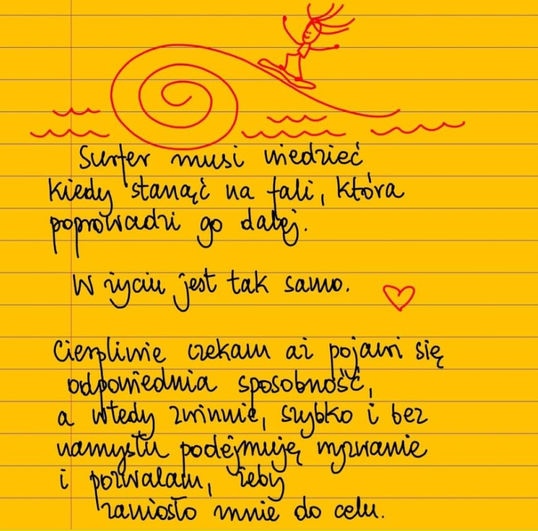 Wiesz, to ponownie jest dla mnie jakieś wręcz nienormalne…, ale wyobraź sobie, że ja zamiast tak stricte myśleć tylko o sobie samej, o jakichś swoich celach…, to zaczęłam również myśleć o Gracjanie, aby może WSZECHŚWIAT podarował mu to, czego najbardziej potrzebuje i czego mu tak brak… Prócz oczywiście miłości, może również trochę więcej odwagi… , choćby do odezwania się do mnie…, przecież nie mogę w to wprost uwierzyć, dlaczego on tego nie widzi i nie odczuwa, że ja bardzo potrzebowałabym wsparcia takiego człowieka, jakim on jest, a jestem/ bywam o tym przekonana, że obydwoje moglibyśmy sobie jednak również pomóc …