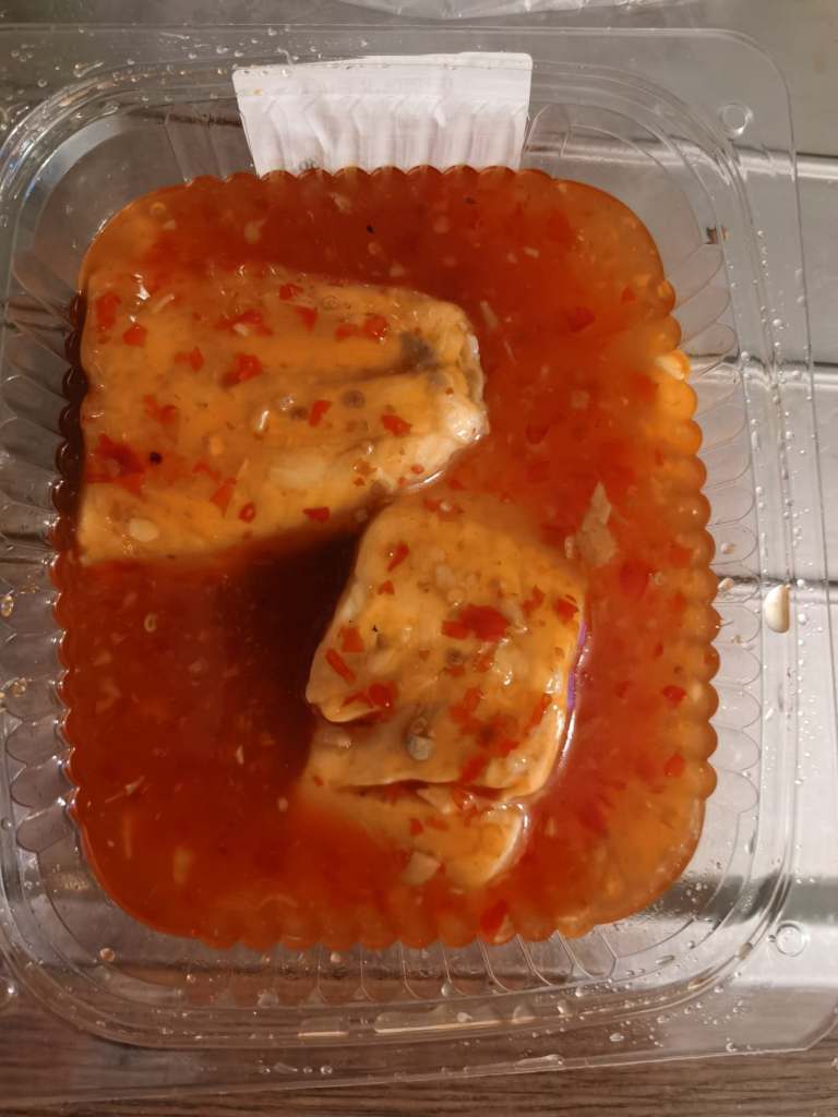 Ponieważ nad tym morzem też można było jedzenie tylko ze sobą na wynos zabierać… Zatem już wiedziałam, że żadnej zupy z pewnością sobie nie kupię, bo nie bardzo byłoby nawet gdzie siąść i ją zjeść. Ale zobaczyliśmy wtedy, że są choć Wrapy [i to jeszcze były również z rybą!], tak więc wzięliśmy sobie wszyscy po wrapie: Kamyk oczywiście z jakimś mięskiem 😉. I tak sobie to jedliśmy, tzn. ja bardzo chciałam usiąść, a znaleźliśmy tam jeszcze na zewnątrz takie miejsca, gdzie można przysiąść. Oni wcisnęli się gdzieś tam jakoś pod daszkiem, bo zaczęło już lekko kropić… Ja jednak dostrzegłam tam dalej stojące stoliki z ławkami i stwierdziłam, że skoro to są moje imieniny, to chcę zjeść tak już porządniej i wzięłam po prostu tego swojego Wrapa i tam poszłam właśnie siąść.
