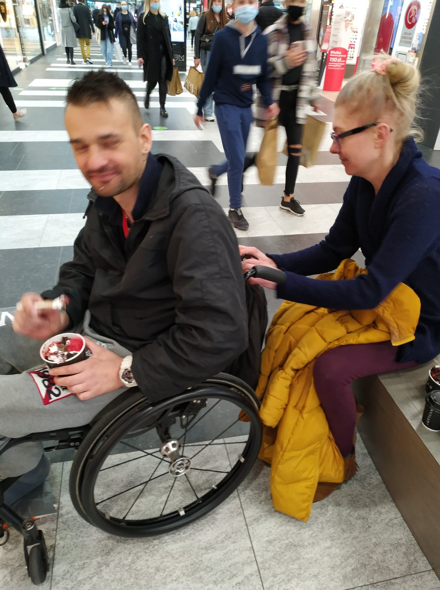 Bo i tak było… , idąc w stronę tych sklepów, zaczęłam już nawet obczajać, czy ewentualnie są gdzieś tu choć w pobliżu mnie takie miejsca, gdzie moglibyśmy wejść do środka z chłopakiem na wózku inwalidzkim i coś ewentualnie ciepłego / obiadowego zjeść… Bo nie zapominaj, że ja nawet jakichś takich dobrych knajp z tym jedzeniem to na mieście aż tak dobrze nie znam… no a już tym bardziej takich, które miałyby również może nie jakieś udogodnienia, ale choć były by możliwe/ „dostępne” w ogóle dla osób na wózkach…
