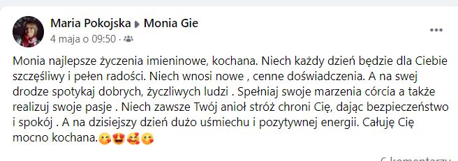 Świetnie, ale kochana moja, nie wiem, czy Ty tego nie dostrzegasz…, lecz Ty wciąż nie nazywasz rzeczy po imieniu… Pamiętaj proszę o tym, że Twoi czytelnicy nie siedzą w Twojej główce i wciąż mogą nie do końca rozumieć, co tu masz na myśli, bo mówisz przecież o konkretnych rzeczach/ wydarzeniach z Twojego życia! Także proszę naświetl to tutaj lepiej 🙏.