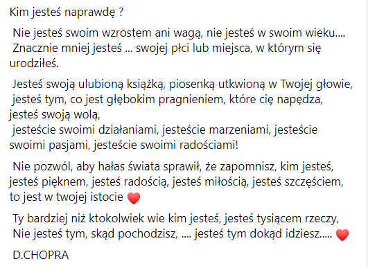, a przecież ludzie chwalą się, zwłaszcza na tym fejsie, również wieloma rzeczami 😜. Postanowiłam, najzwyczajniej w świecie, cieszyć się z tego, co mam, a czuję to po prostu teraz już całą sobą, że właśnie takim podejściem, będę przyciągała do siebie tylko to, co najlepsze!