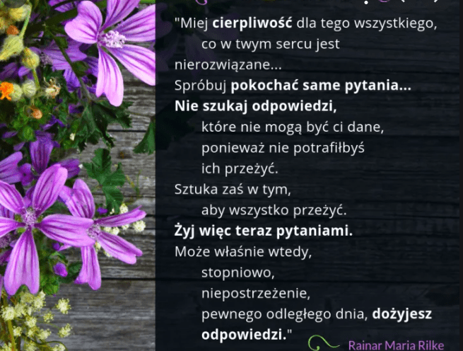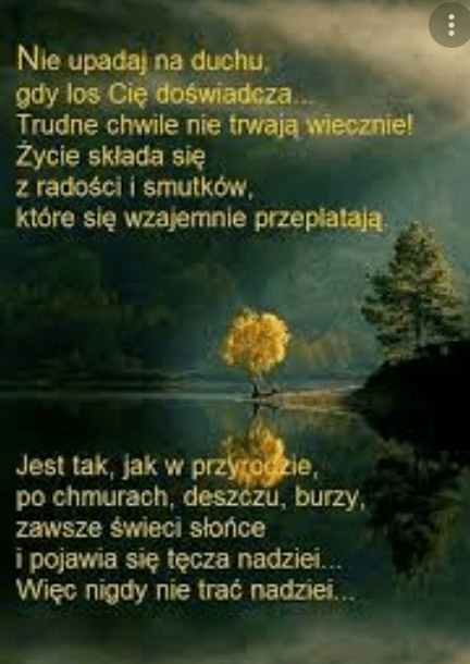 Kochana moja, widzę, że dopada Ciebie ponownie ten stan… dołerstwa… Tyle razy już o tym rozmawiałyśmy, że na wszystko potrzeba czasu! A tym bardziej na uleczanie tylu poważnych jednak traum, jakich Ty moja kochana doznałaś!