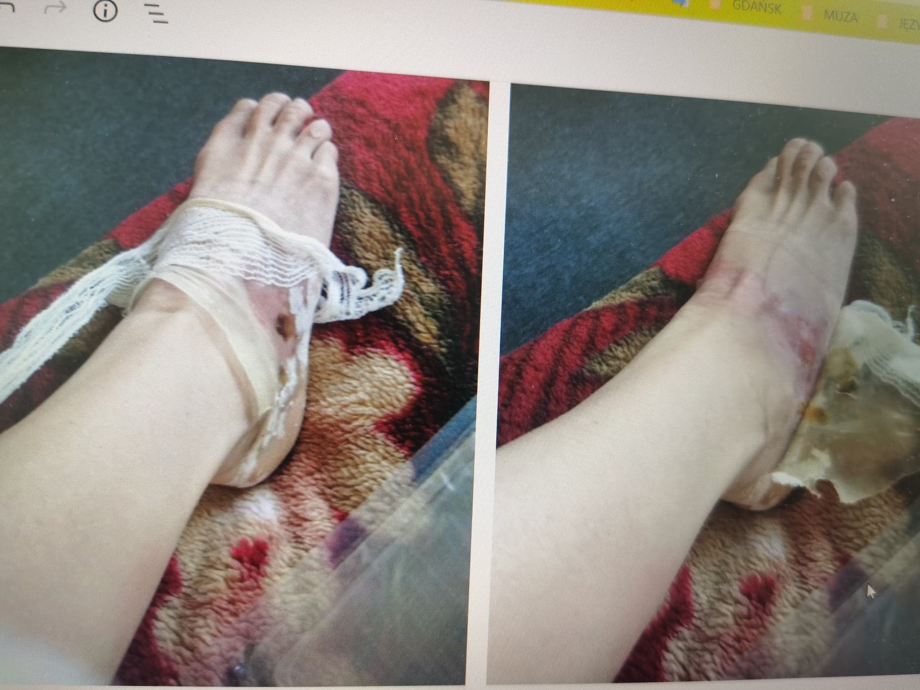 Doskonale się o tym przekonałam już dawno, a ostatnio choćby tą sytuacją z oparzeniem… Wtedy też przecież, jak tak mówiłam, to wiesz, trudno sobie było raczej, rzeczywiste rozmiary tego obrażenia wyobrazić, a już zwłaszcza, że nie mogłam w ogóle chodzić! I teraz oczywiście było tak samo! Bo na samym początku, jak to rzekłam lekarce, to ona jakoś szczególnie na to nie zareagowała…, przyjęła po prostu do wiadomości i tyle. Dopiero zaś, jak pokazałam jej TE zdjęcia: