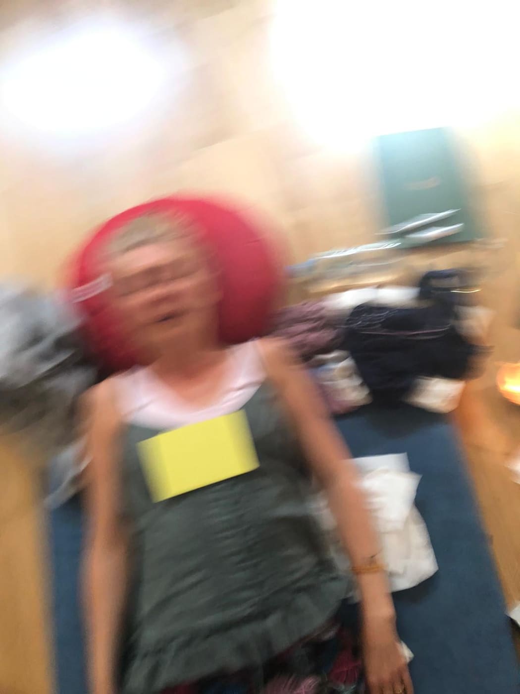 Otóż prowadząca te warsztaty MEGA IZA [która stała się naprawdę moją bohaterką wręcz] zaczęła wykonywać taką właśnie rzecz za pomocą łyżki i olejku…, najpierw na bolących barkach tej Olgi…, ooo rany właśnie 19:40 ponownie widzę gołąbka u mnie na latarni 😊, a jak usłyszałam, iż ją bolały te barki i właśnie takie mniej więcej rzeczy zaczęły jej z tego bólu wychodzić… to bardzo chciałam również i ja tam przysiąść, by może również i u mnie coś wyszło…