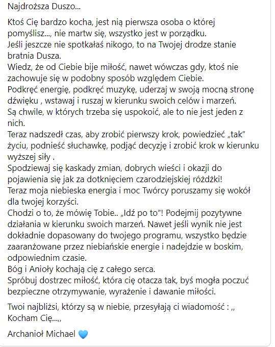 Dziękuję. 🙏💗 Twoje życzenia przyszły do mnie w idealnym momencie. Przestrzeń jest informacją. 😊 Kto do mnie napisał?