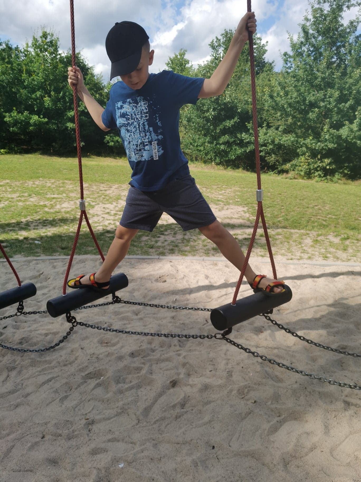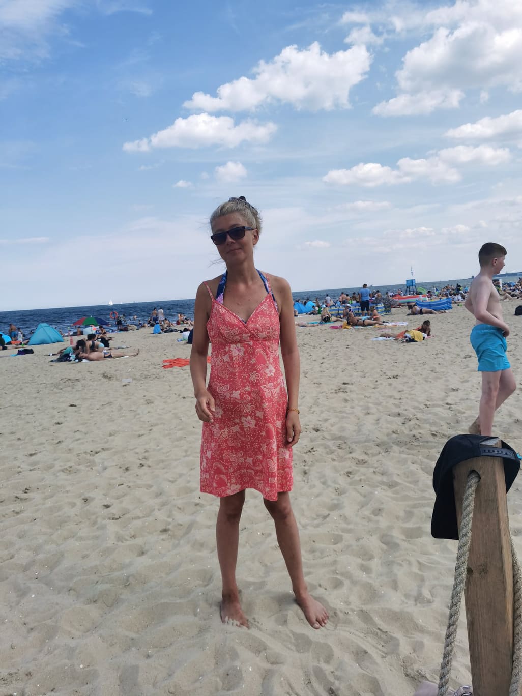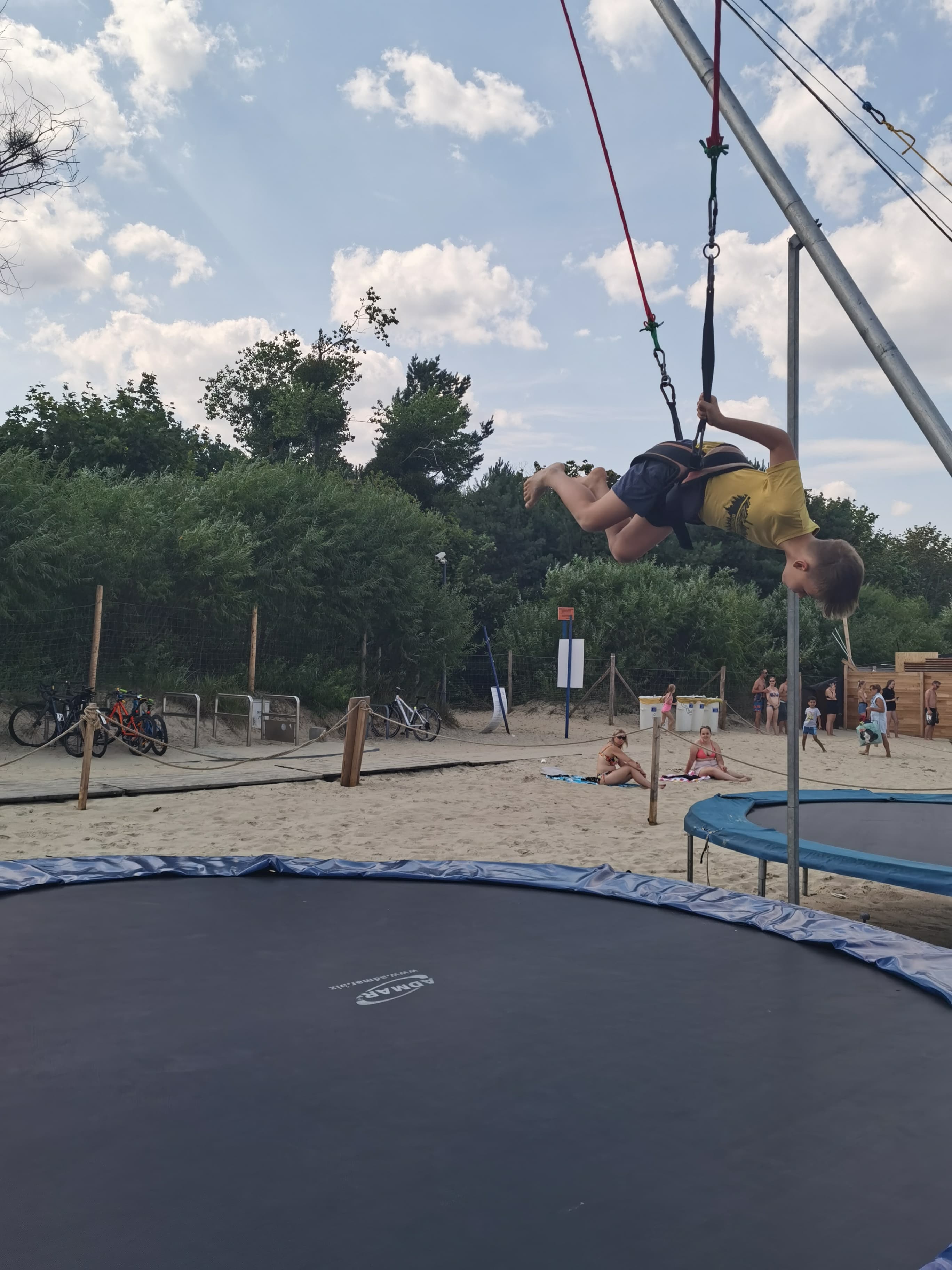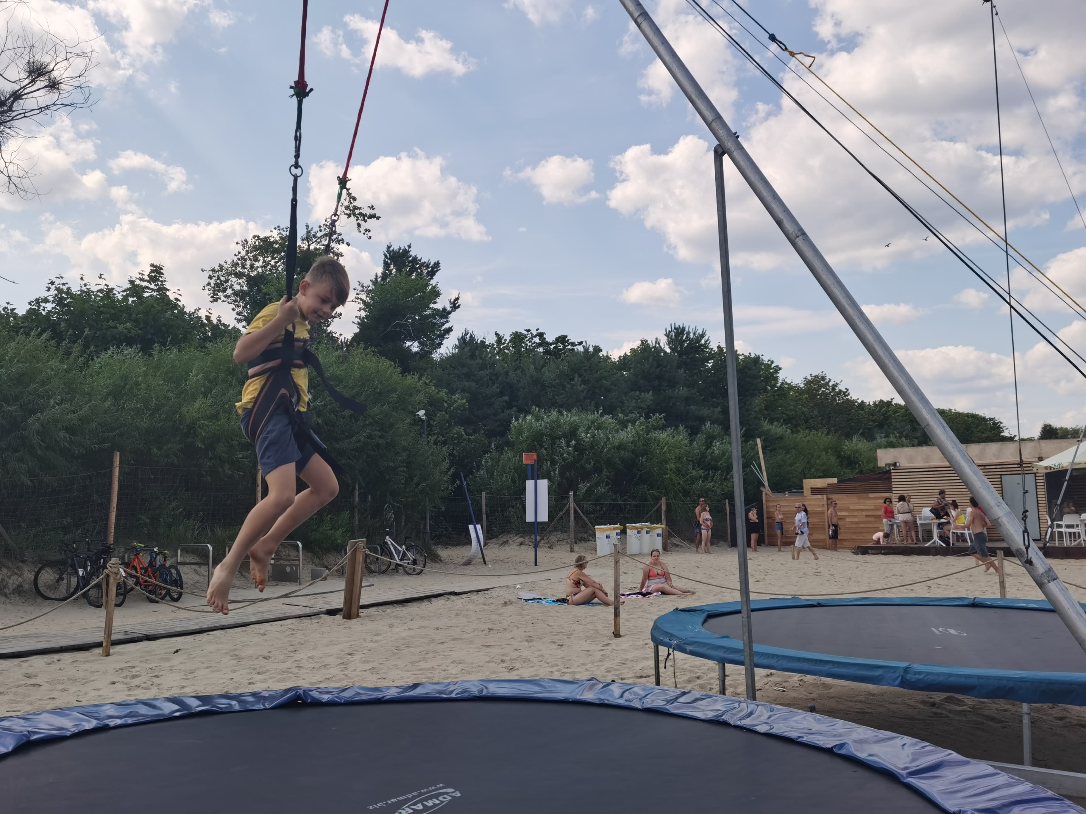 I tego dnia właśnie, tam na tej plaży, Kacper zobaczył te trampoliny i oczywiście chciał na nich sobie poskakać. Więc babcia, skoro obiecała mu jakieś atrakcje, zakupiła mu bilet. I ten młody człowiek robił tam nawet salta skacząc, co widoczne jest na 5-tym zdjęciu od góry!