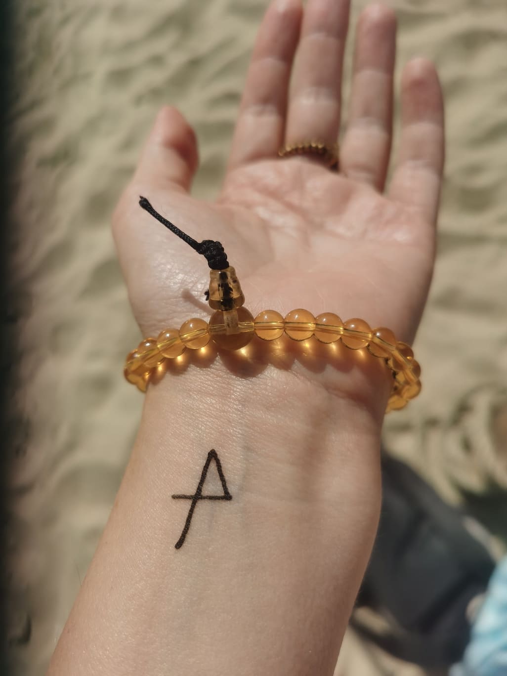 To może jeszcze tylko tak szybciutko napomknę tu o tym, iż … kurczę, już teraz nie będę twierdziła, iż to było w tym Sopocie, bo mi obecnie kojarzy się to raczej w całkiem innym miejscu… Choć…, chwileczkę, może to było właśnie tam! Bo przecież to był jedyny dzień, PIĄTEK, 13.VIII.2021, który to spędzaliśmy właśnie nad morzem! Zatem to było tak, iż wędrowaliśmy tak wszyscy, tzn. ja jakoś tak szłam chyba wolniej… No i luknęłam, że było tam takie stanowisko z tatuażami z henny… I ja tak niemal szybciutko i automatycznie spojrzałam sobie na tą moją rękę…, a tam zapomniałam właśnie ponownie narysować sobie długopisem tą runę, a bardzo starałam się tego pilnować, by jednak wciąż ją mieć widoczną na moim nadgarstku przez te 21 dni i wtedy właśnie patrzę… a tam ZDIWKO… 😮, bo jednak już nic nie mam, zeszło, zmyło się i zapomniałam, cholerka sobie to odnowić… 🤷♀️