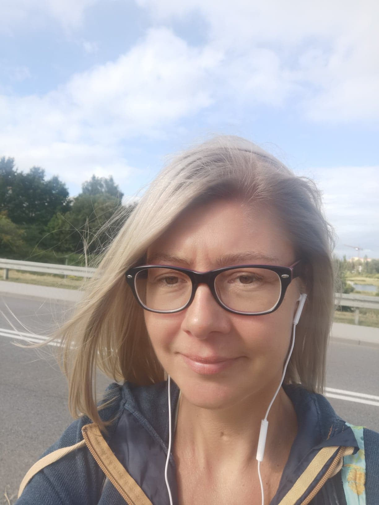 Choć dodać tylko muszę, że ten gołąbek przyleciał pierwotnie TUŻ POD DRZWI OD MOJEJ KLATKI! Jednak nim ja wyjęłam ten telefon, by go sfotografować…, zdążył mi już odlecieć na najbliższy trawnik…, ale i tak wciąż było mi TAAAK miło, że widzę go ponownie… A pozwolę tu jeszcze pokazać siebie, jak wówczas właśnie wyglądałam. Tzn. nie akurat w tym danym momencie, jak ujrzałam tego ptaszka, ale w ogóle wracając już i kierując się do domu