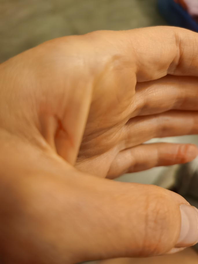 Bo zaraz myślę sobie tak…, czy to oznacza, że potrzebowałam jeszcze, kurna, dziś tego doświadczenia = rozcięcia tej dłoni…???