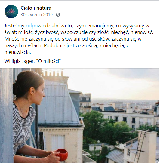 Po czym, po jakichś 40 minutach doszło do mnie, że przecież nawet się nie podpisałam… , a na moim profilu widnieje tylko zdjęcie z napisem: JESTEŚMY TYM, CO O SOBIE MYŚLIMY. Wszystko, czym jesteśmy wynika z naszych myśli. Naszymi myślami tworzymy świat. BUDDA. [wstawiłabym oczywiście je tutaj, ale już nie mogę…😞😟już naprawione = patrz powyżej😉] Zatem zaraz to uzupełniłam: