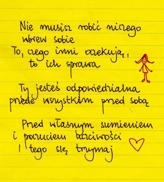 Dlatego właśnie, kochanie, choć wiadomym jest, że KAŻDNE UCZUCIE TRZEBA PRZEŻYĆ, gdyż ŻADNE Z NICH NIE JEST ZŁE, CZY NEGATYWNE! Nie możemy ich wykluczać, bo przecież, skoro ono się w ogóle pojawia, to z całą pewnością próbuje nam coś także przekazać. Ale, naprawdę, kocham wręcz to w Tobie, że Ty tak bardzo nie chcesz skupiać się na tym, co złe i ciężkie, tylko nieustannie walczysz.