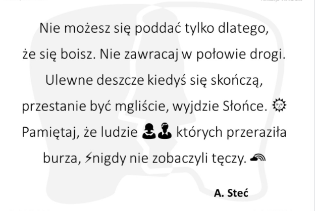 Oczywiście, że nie mogę się podać! Nie mogę przecież siedzieć z założonymi rękoma, muszę przede wszystkim coś robić i działać, bo wciąż mam w głowie te słowa: