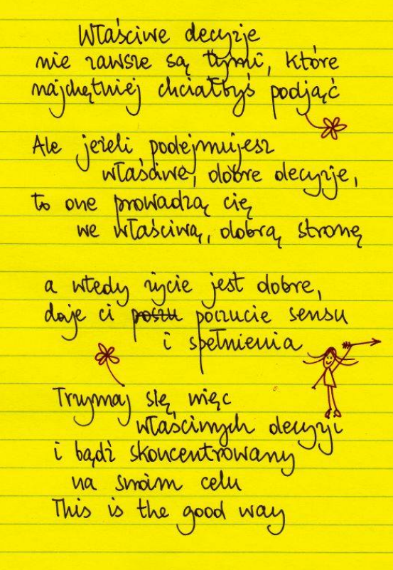 No sama widzisz po tym moim zapisku… Serio, ja nic na to nie poradzę, że nie jestem w stanie tego wszystkiego zapamiętać… A przecież przewijał mi się ponownie przez głowę, co chwila jakiś pomysł, tzn. jak tylko usłyszałam te właśnie słowa, to jak najprędzej starałam się je zanotować lub choćby to, że powinnam później to zrobić, 😛