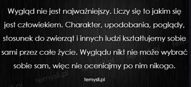 - nie wstydzi się siebie pokazywać, nawet gdy nie wygląda najlepiej, jak może, bo jest np. zmęczony… Lecz on przecież jest tego świadomy [tak jak i zresztą ja!], że wygląd nie jest wszystkim! A tak naprawdę wszyscy mądrzy ludzie o tym wiedzą, że jest on jedynie