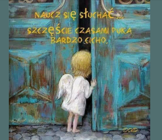 Wprawdzie, jak to ona, jak już wyszła, to postanowiła pójść… A tym razem chciała nawet udać się na tę dolinkę… Tym bardziej, że… , kochani, jeszcze przed wyjściem siedząc już wygodnie, oparta o tę poduszkę, wzięła do ręki książkę … Lecz nim ją otworzyła, poprosiła o to, aby otworzyła na stronie, gdzie odczyta przekaz dla siebie i tak, ponownie niemal odebrało jej wtedy mowę…, bo spójrzcie tylko, co przeczytała: