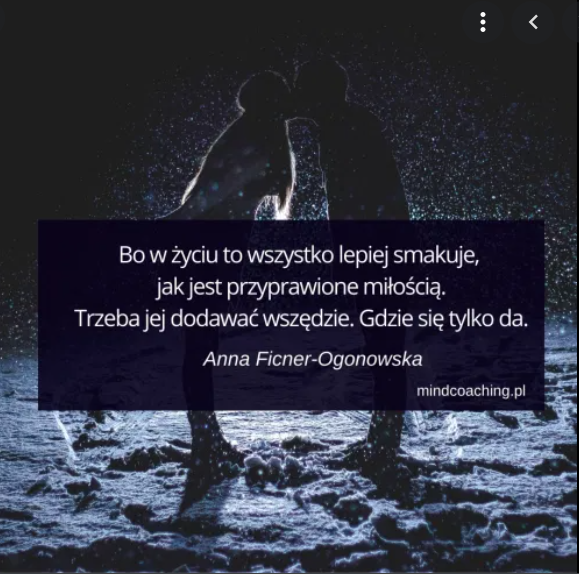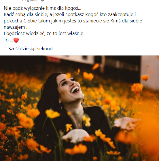 Kochanie, już dawno miałam to mówić, że to jest przecież w Tobie niesamowite, iż już teraz potrafisz to robić nawet w chwilach, gdy siebie nie cierpisz/ nie znosisz/ gdy jesteś na siebie za coś zła/ smutna/ przygnębiona. To Ty wtedy, jakby jeszcze mocniej chwytasz siebie za rękę i twierdzisz, że jesteś piękna i cudna, i że CHOĆBY NIE WIEM, CO SIEBIE NIE ZOSTAWISZ!