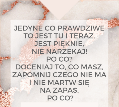 Tak właśnie… Nie wiem tak naprawdę, skąd to wzięłam, bo przecież później już doszło do mnie, że ja nie umiem tak nic nie planować… Czuję się też z tym chyba trochę niekomfortowo… Ale na wtedy już to po prostu odpuściłam. I… serio, wiem, jak to może wyglądać…, bo chyba sama siebie nie poznaję wręcz… Ale, np. obudził mnie oczywiście dopiero budzik o 7:25 i od wtedy czułam w sobie jakiś taki płacz… Lecz przecież wciąż przyświecają mi te właśnie słowa: