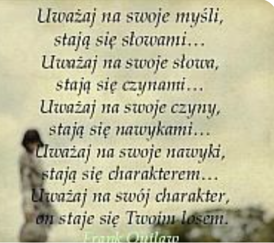 A mianowicie [odnoszę wrażenie, że wciąż niewielu ludzi zdaje sobie z tego sprawę] Chodzi mi tu o to, że TO MY DECYDUJEMY O TYM, JAKIE MYŚLI MAMY W NASZEJ GŁOWIE!