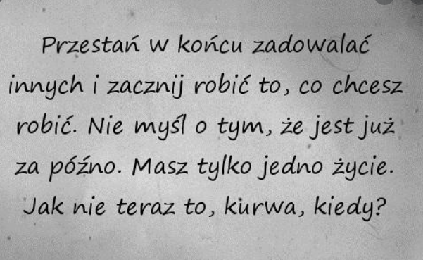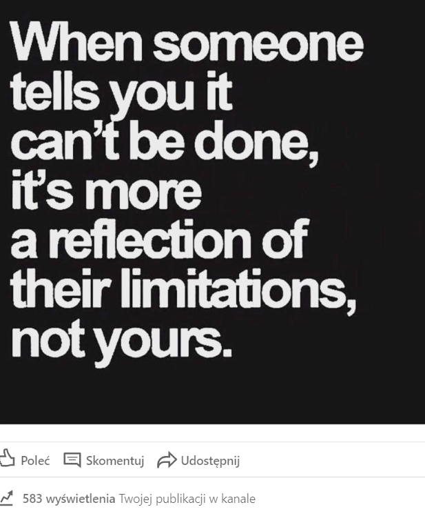 Tak więc, kochana, pamiętaj, że NAJGORSZYM JEST STANIE W MIEJSCU! Ale…, Słonko, spójrz tylko, weszłaś ponownie na LI, by znaleźć ten obrazek, który polubiłaś [niestety nie dodałaś go do swojego profilu…] Tak więc teraz nie ma szans, by to odnaleźć… Ale… zobacz tylko, na co teraz natrafiłaś? Czyż nie możemy potraktować tego komentarza, jak właśnie dla Ciebie obecnie: