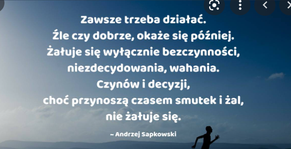 Tak, wiem o tym bardzo dobrze, ale… muszę powiedzieć, że tak czytałam leżąc dziś na łóżku ponownie ten wpis… Wszelkie błędy postarałam się już właśnie dziś, PIĄTEK, 01.III.2024, poprawić. Lecz przede wszystkim chciałam dodać, że to wcale nie jest zawsze tak, że ja uważam, że trzeba coś robić! Poniekąd przychodzi mi tu do głowy od razu to, co powiedziała ta Ewelina, nazywając to kochaniem siebie. Że owszem, to jest przecież bardzo istotne, ale u każdego kochanie siebie znaczy przecież co innego!