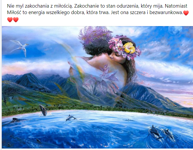 Kochana moja, ale to jest przecież CAŁKOWICIE NORMALNE, BO KAŻDY CZŁOWIEK POTRZEBUJE KOCHAĆ, JAK I ODCZUWAĆ, ŻE JEST KOCHANY!