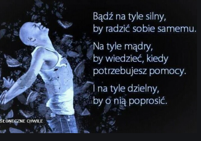 Noooo… tak właśnie zrobiłam, buhaha, 😜. I teraz już mogę powiedzieć, iż rzeczywiście masz rację! Sama przecież wciąż staram się jednak nie siedzieć i nie narzekać, i beczeć [choć nieustannie czułam wtedy cholerny garb z tego płaczu…]. Lecz, zawsze postępuję tak, jak m.in. mówią i ta dr psycholog IZABELA KOPANISZYN oraz ten dr ADAM ZEMEŁKA, psychoterapeuta, czyli myślę sobie: ok. jest jak jest, ale CO MOGĘ ZROBIĆ, ABY BYŁO CHOĆ TROSZKĘ LEPIEJ? I… jednak to wykonuję, choć oczywiście w pierwszej kolejności czuję się zawsze, jak ostatni popapraniec…