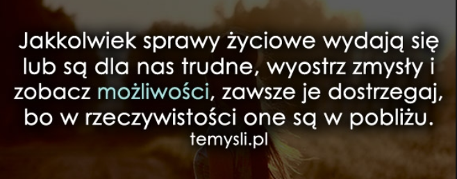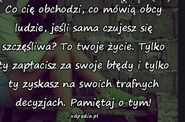 A naprawdę, aż zacytuję tu ponownie "moją starszą siostrę": JESTEM MĄDROŚCIĄ SWOICH DOŚWIADCZEŃ, a przede wszystkim wciąż czuję się TWÓRCĄ SWOJEGO ŻYCIA! Dlatego, choć jest mi czasem trudno i jakby nie było ciężko, BO JA MAM ZNACZNIE INNE UTRUDNIENIA NIŻ WIĘKSZOŚĆ ZDROWYCH OSÓB! I choć nie lubię tego wspominać, to mam świadomość, że tak wygląda ta "moja historia" i skomplikowana jednak przeszłość. Lecz dobrze już o tym wiem, że